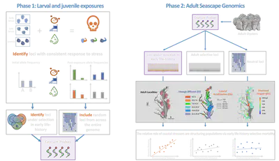 Phase 2 will determine the role of natural and anthropogenic forces shaping the evolution of oyster populations by testing (i) if selective regimes differ and interact across life-history stages and (ii) if the frequencies of both neutral and resistant genotypes correlate to environmental conditions and if adaptive loci partitioned across life stage. Environmental data will be integrated into a seascape genomics framework using panel of genomic markers, including potential loci under selection during early-life history to survey the genome of adult populations across 24 localities from four urbanized estuaries.